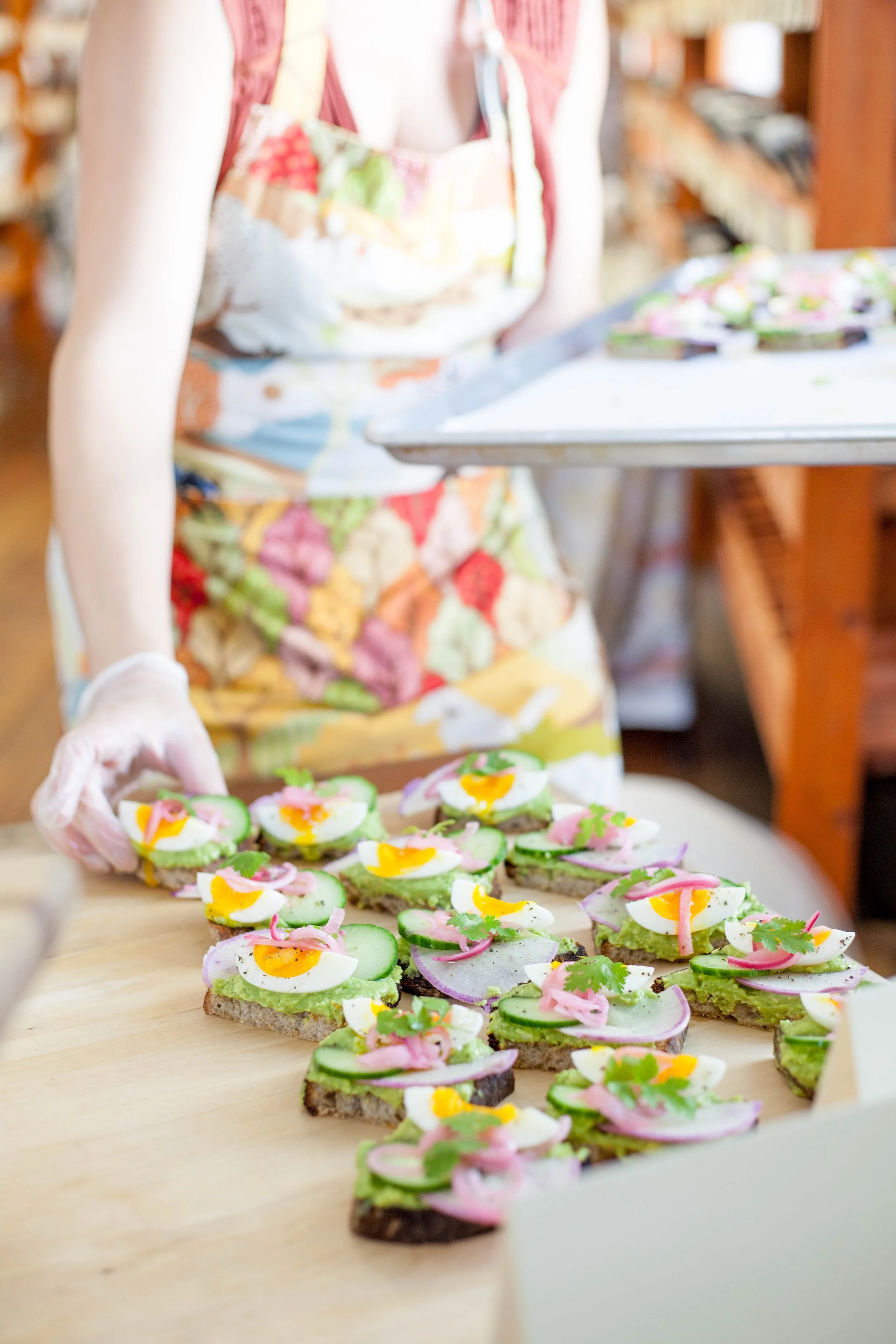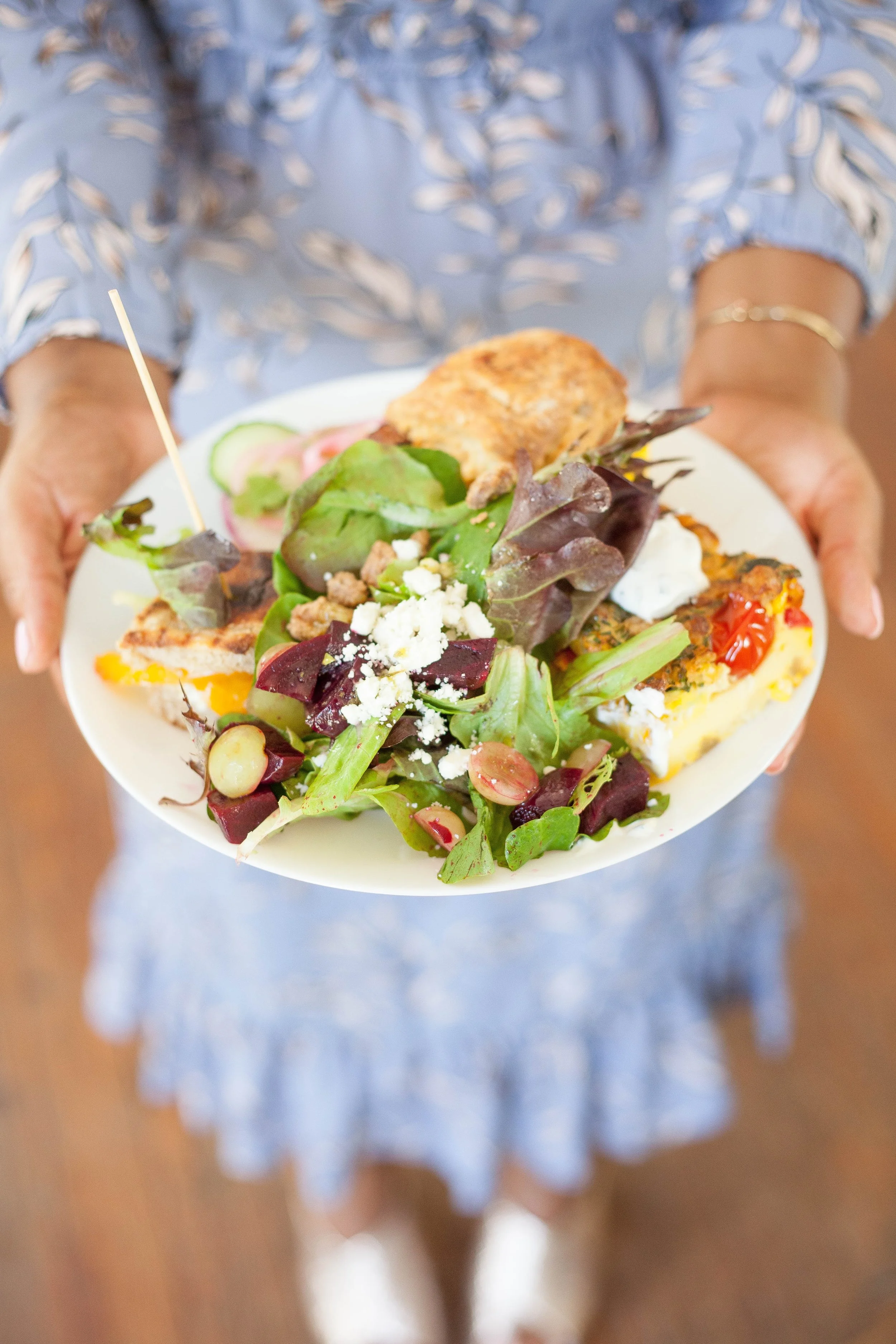 Julia and Spiro at Heirloom Market were awesome. Julia was my main point person and she was incredibly helpful. I simply presented the idea to her, she rolled with it, she created an awesome menu and it was delicious. I love Heirloom Market a lot personally. I really love the idea that you can dine there, buy fresh farm and wholesome products, hang out and do homework, and also in the spring, buy heirloom seed for your garden. In addition, Julia and Spiro are such kind and wonderful people. Our menu consisted of Avocado toast, BLT's, Frittata, Biscuit sandwiches, and mixed green salad, homemade lemonade, and blueberry lemon tarts. Everything was delectable especially the frittata and the biscuits.