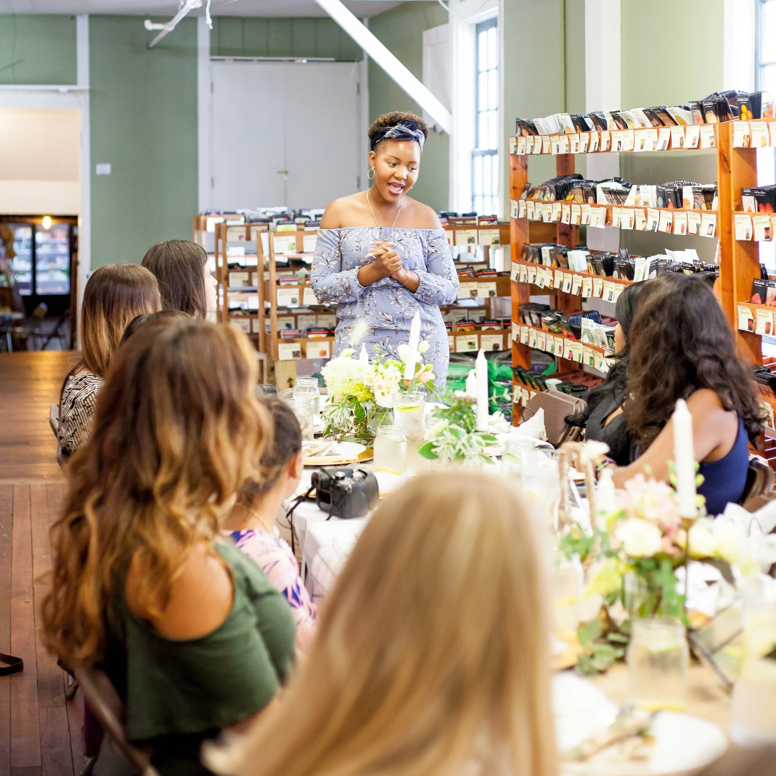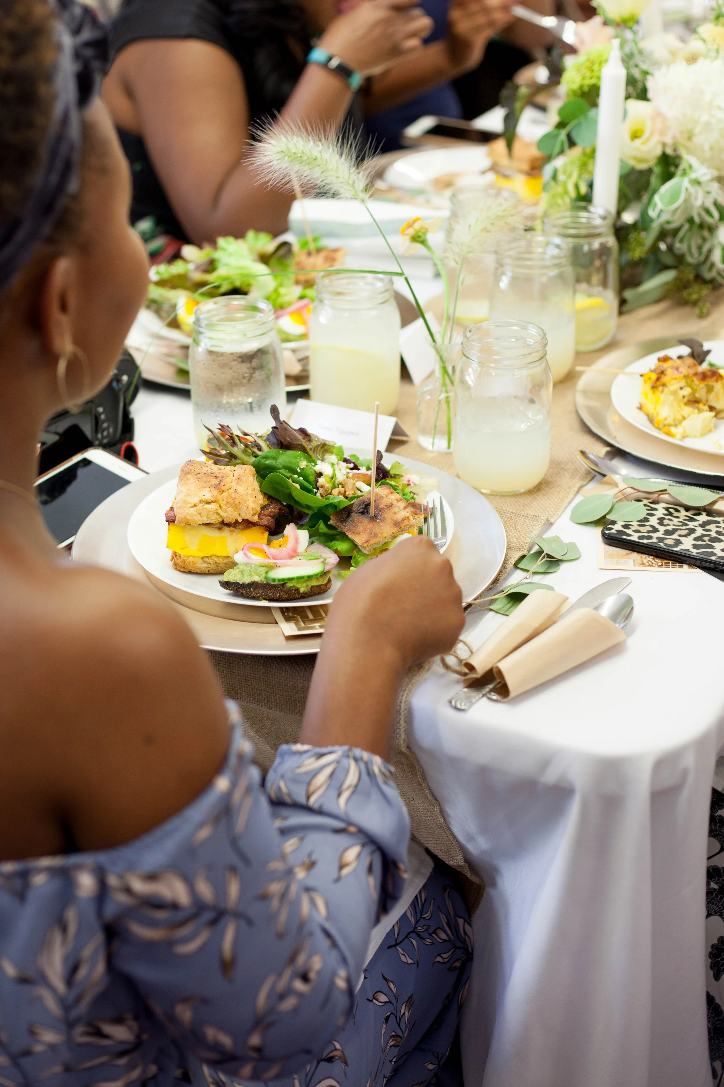 Hi lovelies! Since I moved to Connecticut two years ago, I have been eager to find a blogger community. Over the last year and a half, I have met so many fabulous Connecticut bloggers; some I actually now call more than acquaintances. For some reason though, my blogger circle was still relatively small and I felt as if there had to be more local bloggers who shared the same notion. So on a whim, I started an instagram called Connecticut Bloggers Collective and started reposting CT Bloggers to it. Everyday, I would find a new blogger or vice verse and I was mind blown at how many CT bloggers there actually were. Before long, a small idea grew legs and started walking; pretty much took on a mind of its own. All of this leads to last Saturday, August 19th, 2017 when I hosted my first blogger event ever and it was amazing. It was a room of 25 blogger ladies who came together as comrades eager to network and learn. We set the stage with a beautifully curated table I designed and beautiful floral center pieces by Eddy Farm in Newington. This set a gorgeous palette for our event hosts, Heirloom Market at Comstock Ferre, to play upon with a fun and delicious, farm to table menu. It was a beautiful, informative, and potent inaugural event. All photos in this post taken by Jessica Meade. Scroll down for more...