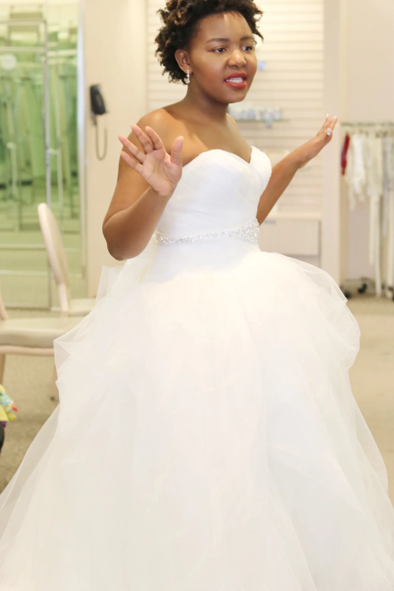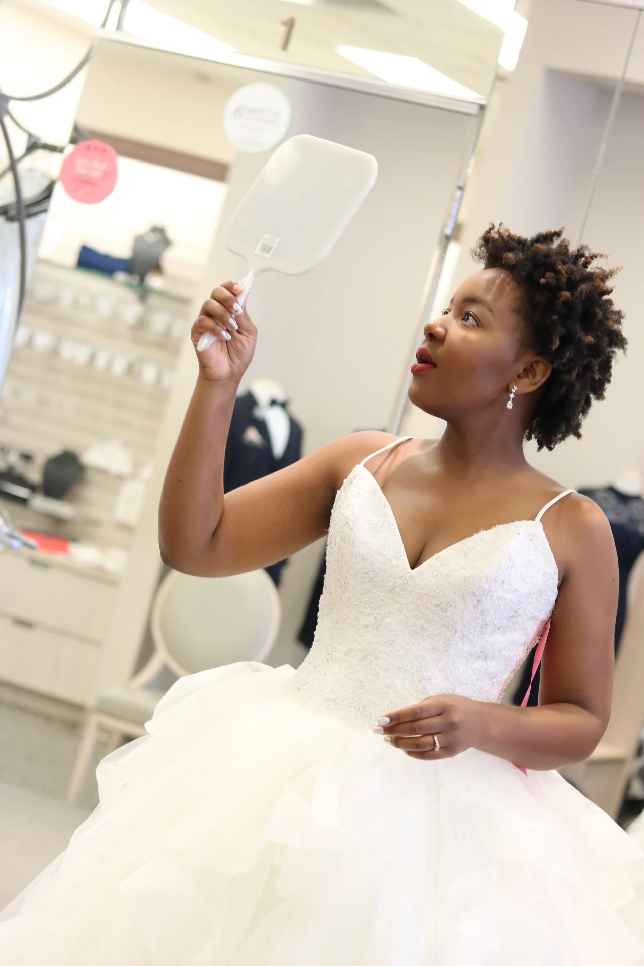 By dress number four, I was still in it to win it but now becoming overwhelmed. I then fully understood why my stylist suggested five dresses for the day. At the end of my appointment, my stylist gathered my final thoughts on what we tried on. She then asked me to note the dresses I liked the most and she would add them to my profile so that next time, everyone knows what dress I tried on and liked. For instance, one of the ball gown dresses I tried on at my first appointment and loved was no longer on the "love it list" after trying it on again the second time around. From what I understand, this is totally normal. I would highly suggest trying on dresses at least a couple of times before committing because I totally did not expect to not like that dress that I loved the first time around.