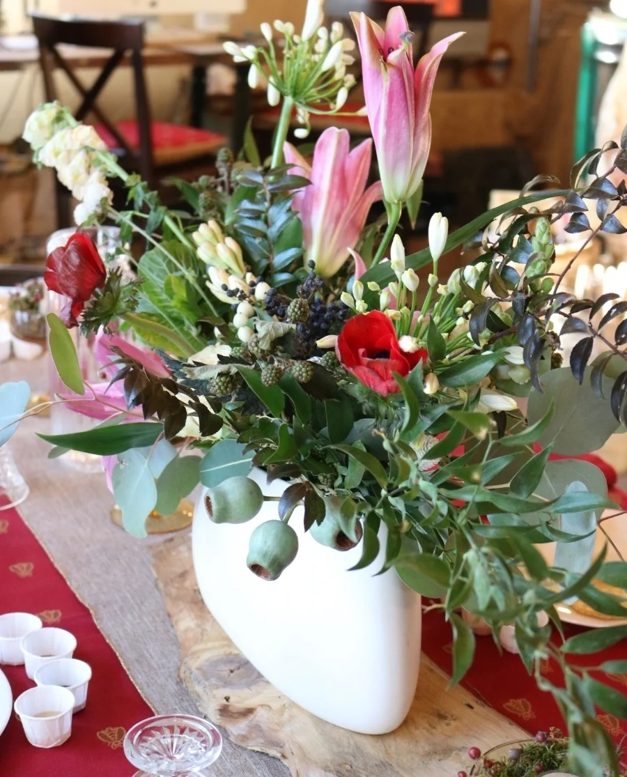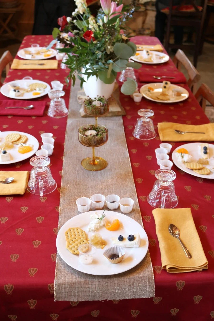We sat at a beautiful table with the most glorious floral arrangement by Stems & Co, that was set up for a guided tasting of a flight of 5 different honeys that each had a specialty pairing. On our plates, there were crackers, goat cheese, mandarin orange, and rosemary, brie and blueberries, dark chocolate and an almond sliver, grated coconut and pollen, and a helping of honey with the honey comb with gold flakes. In front of the plate, from left to right, Orange Blossom honey (paired with goat cheese, mandarin orange, and rosemary), Blueberry blossom honey (paired with brie and blueberries), Buckwheat honey (paired with dark chocolate and almond) , and crystalline Clover honey (paired with coconut and pollen). Each pairing was incredibly delectable. The naive tongue would think that they all tasted the same with maybe minor differences. However, Marina guided our minds and sensory organs to experience the profound subtleties in each distinct honey. The Orange Blossom honey has a rich floral undertone and busty citrusy flavor and pairs well with goat cheese and mandarin orange; neutralizing the gamey taste goat cheese has and creating this sweet & slightly tangy flavor. It also happened to my absolute favorite pairing which is shocking seeing that I don't typically like goat cheese. The second runner up for me was the rich and woodsy Buckwheat honey. It was a deeper color than the rest and also a deeper flavor; almost similar to maple syrup. I could imagine this one drizzled on a crepe with a dollop of liqueured mascarpone. Scroll down for more...